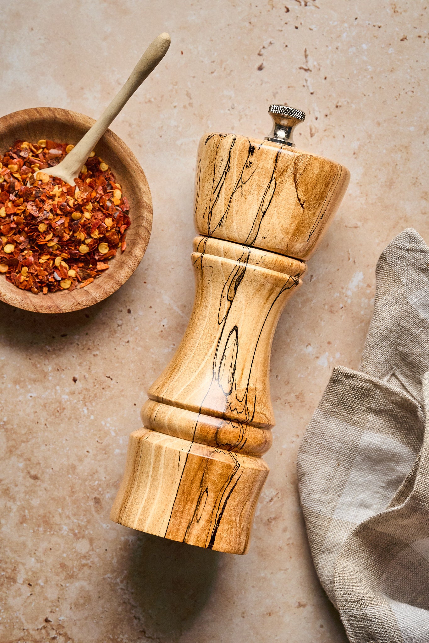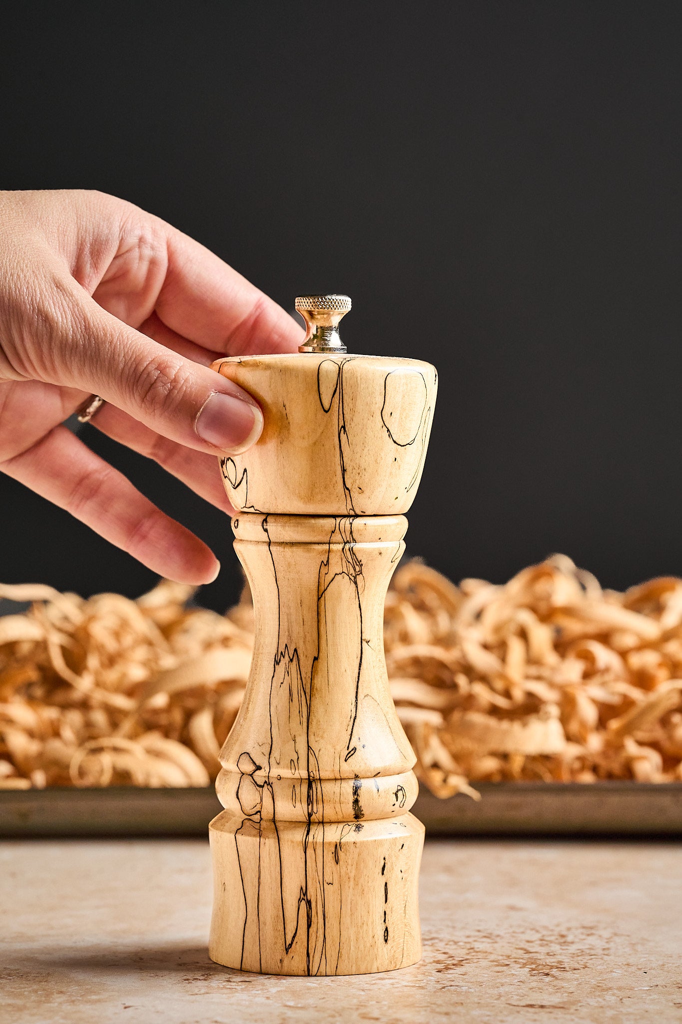 Spalted maple is truly extraordinary. The intricate lines and shifting tones happen naturally when fungi interact with the wood, creating dark tracings and subtle color variations over time. No two pieces ever turn out the same, which makes each mill completely one of a kind.