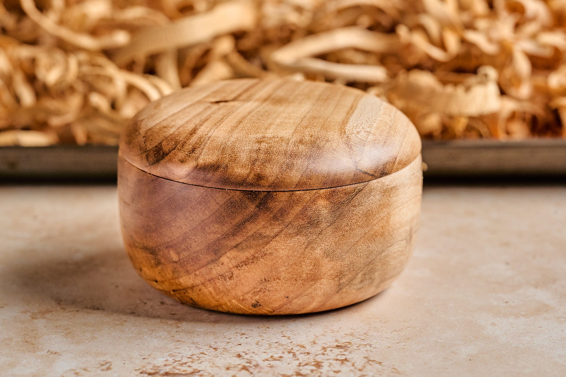 It’s a piece that feels good in the hand and looks right at home anywhere—on the kitchen counter filled with salt, by the bedside holding jewelry, or on a desk keeping small treasures tucked away. Every box is unique, showing subtle variations in the maple’s tone and pattern.