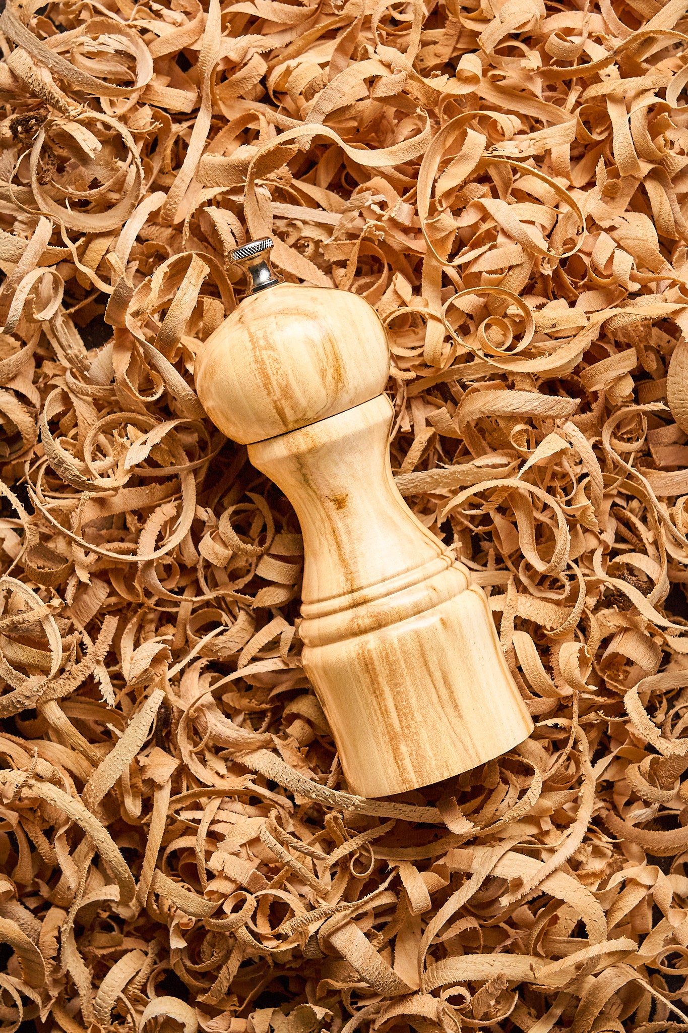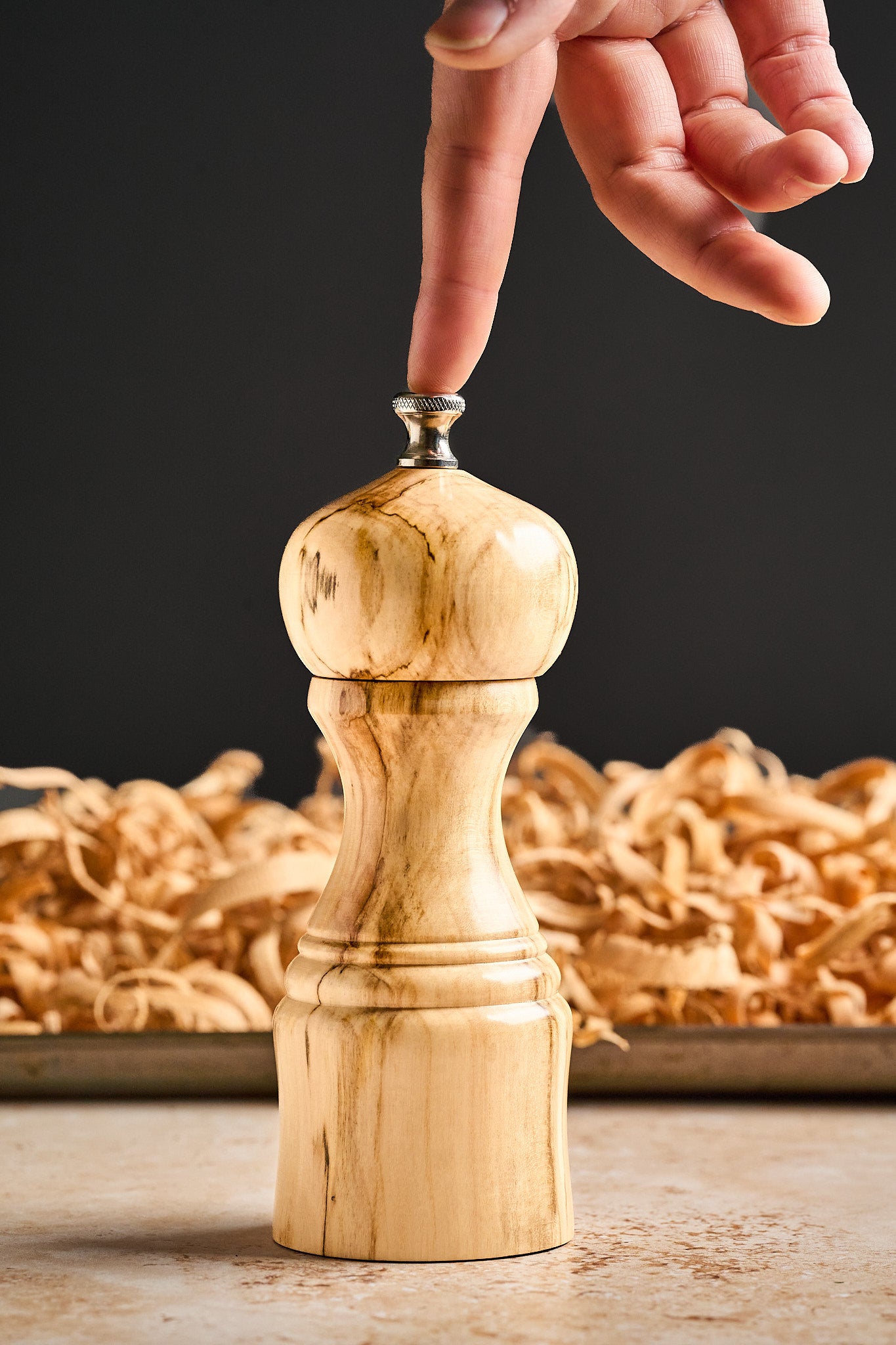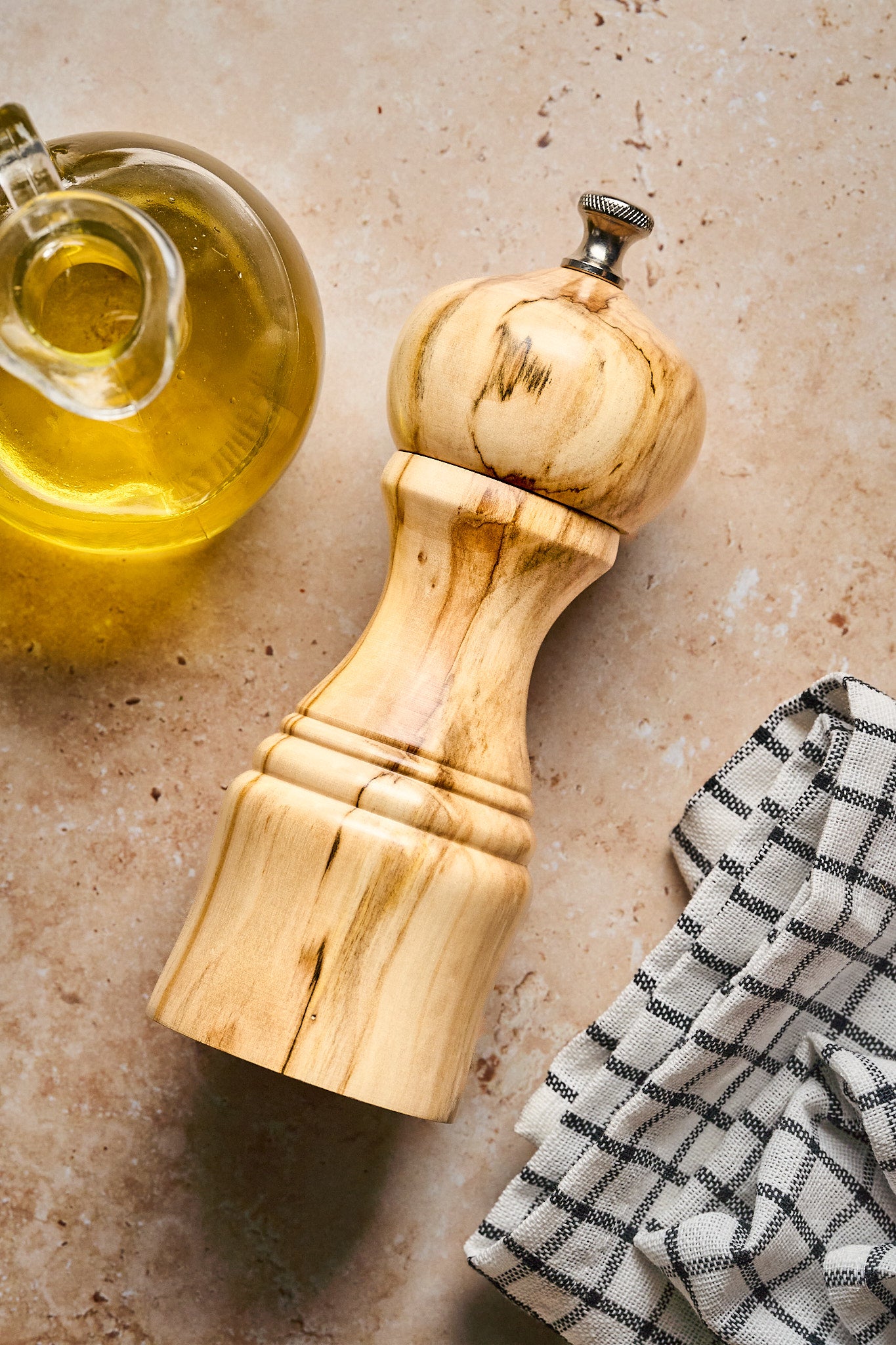The spalted nature of the wood is what gives this pepper mill its beautiful striations and patterns. The intricate lines and shifting tones happen naturally when fungi interact with the wood, creating dark tracings and subtle color variations over time. No two pieces ever turn out the same, which makes each mill completely one of a kind.