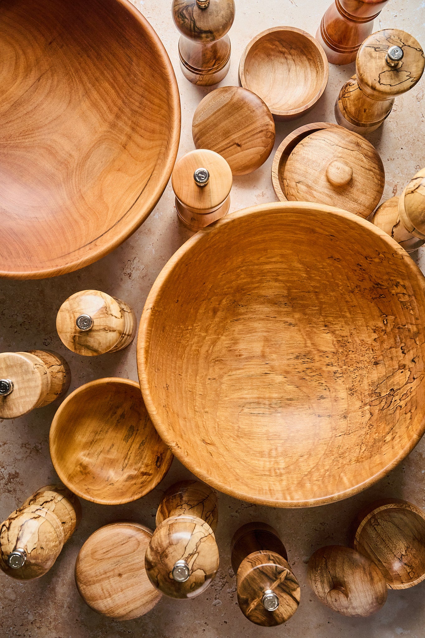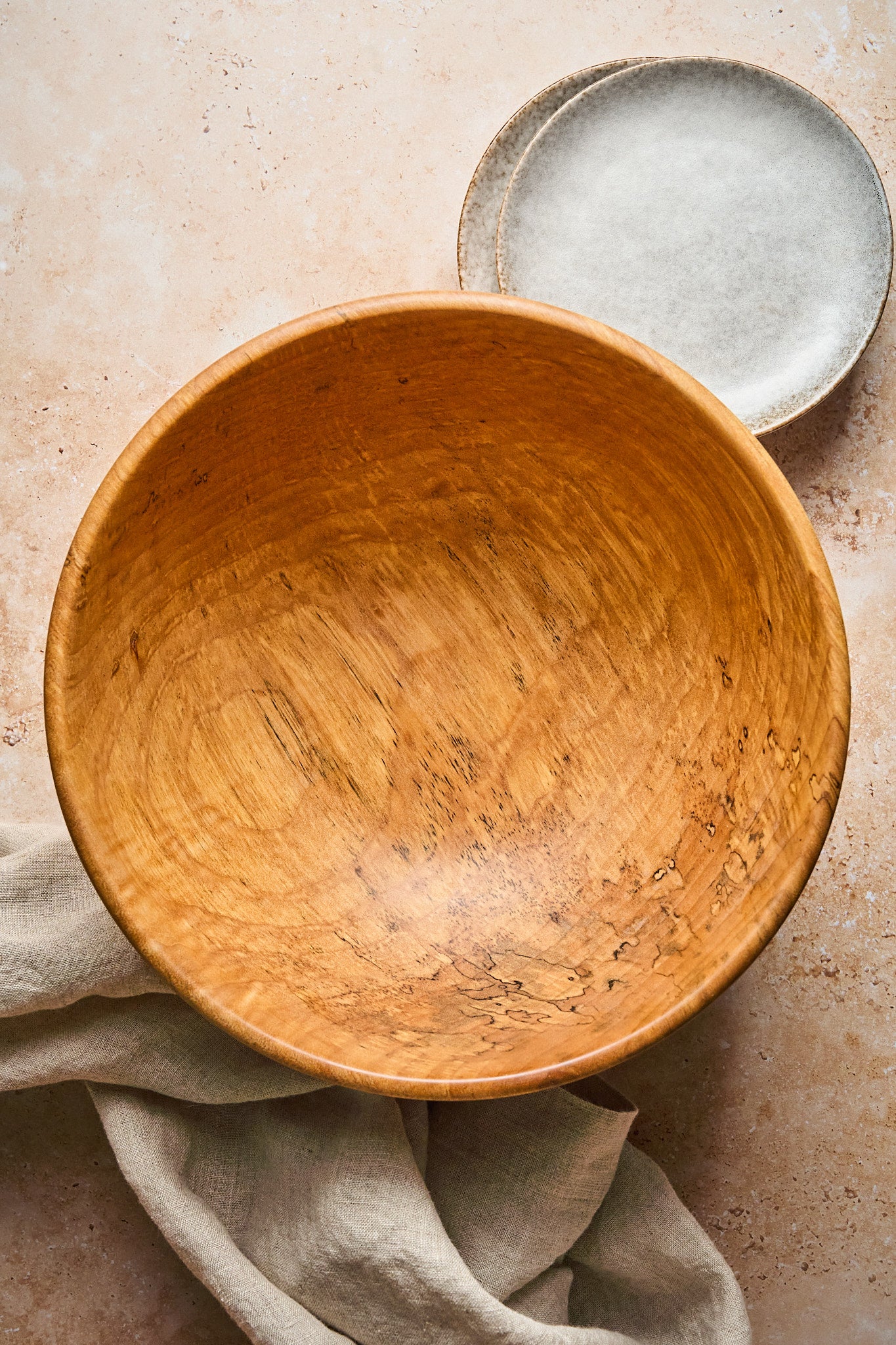 What begins as a fallen piece of birch goes through months of drying, curing, and shaping before becoming the finished bowl you see here. Each bowl is turned on the lathe, then sanded smooth and finished with a food-safe coating to protect and highlight the wood’s natural character.