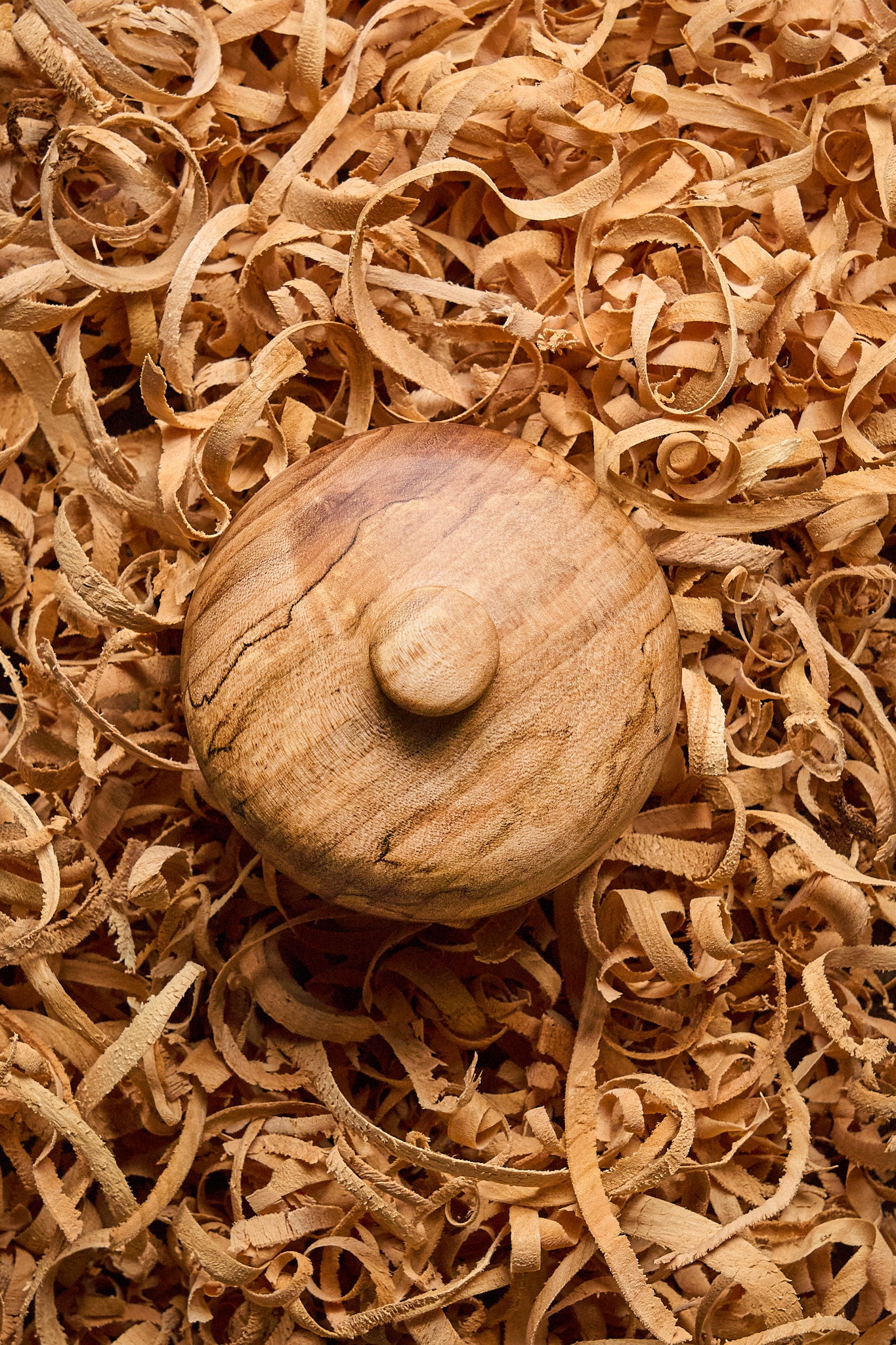 This little maple box is all about form and precision. Turned from one solid piece of maple, the lid and base were shaped together so they fit with a satisfying, seamless feel. The wood was sanded silky smooth and protected with a food-safe finish that brings out its natural grain and pale warmth.